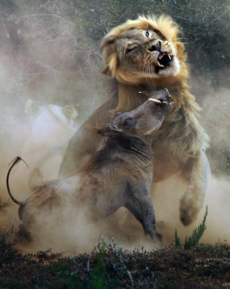 A onaj gospodin sa animal planeta koji je kapiram malo kompetentniji od nas kaze da je svinji dovoljan jedan dobar udarac da usmrti lava brt. Svinja jaca od svakog dzekija pomiri se sa tim.