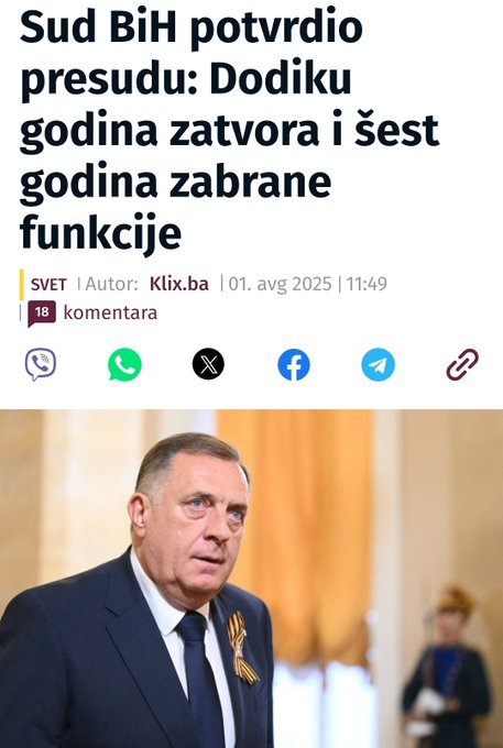 „Nosite se i vi i vladavina prava, kakva vladavina prava?! Pustite nas na miru, moramo da se konsolidujemo, narod Srbije i Republike Srpske oko politike koja na prvo mesto stavlja srpski narod. Bosna i Hercegovina nije moja država, moja država je Srbija i Republika Srpska. I ne vređam nikoga čija je država Bosna i Hercegovina“, poručio je Dodik i rekao da navija za Srbiju, a ne za BiH.