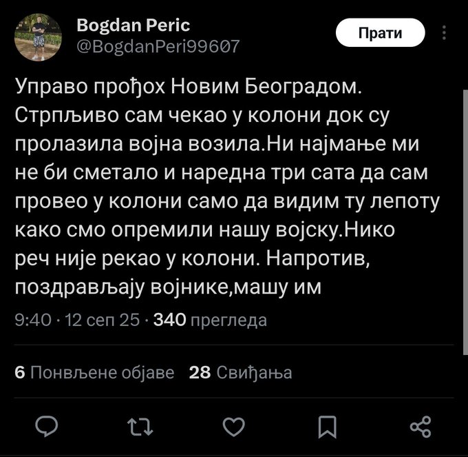 ali brt ova "parada" će trajati do 20es nekog, i posle će se još zadržati neće ovaj vojsku vraćati nazad nema sanse, osuli su se ćacijevci mrsavo i sad mora ovo haha